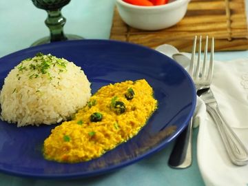 Joya de la gastronomía peruana de la zona de Arequipa, plato destinado a reyes y su corte. Guiso de camarones y verduras con un toque de ají amarillo, que entrega un exquisito sabor y color único.