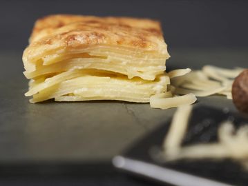 Preparación muy típica del campo francés que consiste en cocinar las papas en crema, unirlas con queso parmesano, y cocinamos al horno, un delicioso acompañamiento.