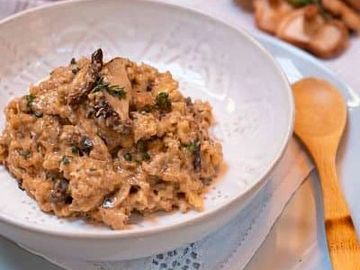 Nuestra versión de esta deliciosa preparación italiana, esta vez completamente vegetal, arroz arborio con una variedad de setas y hongos, trufa en lámina y en aceite, ligados con queso de aceite de palma y hierbas frescas. Una Joya.